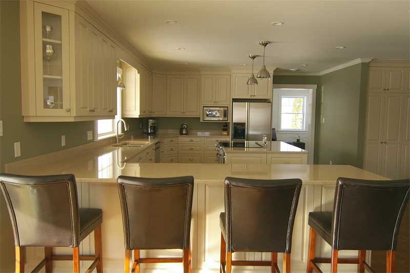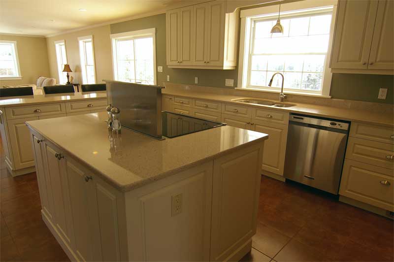 both installed the cabinetry. Jeff Crouse did all the spraying. Robar Countertops (902-543-7149) provided the Zodac quartz material