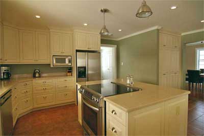 Lisa chose quartz countertops - she liked the look and their dependability. "I'd been around black countertops and didn't want to do that again," she says. "As for something bolder - that's a lot of countertop for loud." (Click photos for larger versions)