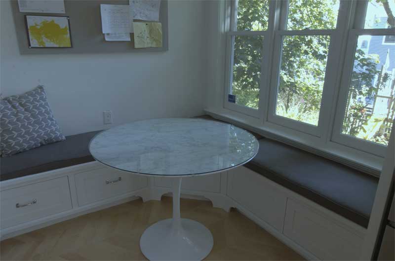 the granite top for the island. Smeltzers Upholstery in Tantallon looked after the kitchen nook cushions.