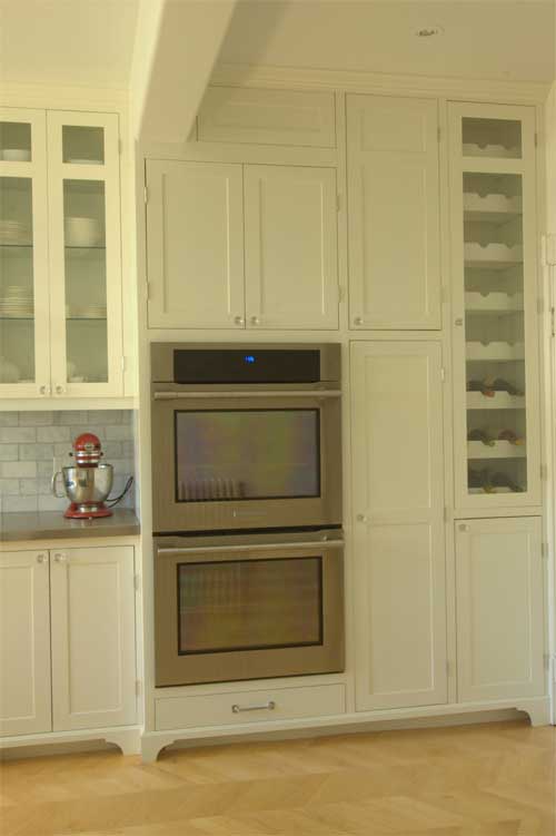 From left, here we get a good view of the tall, slim, wine rack cabinetry as well as the range wall and cabinetry.